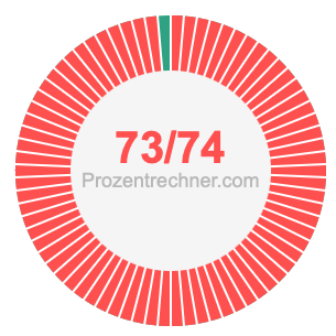 Was ist 73/74 in Prozent? Wie viel ist 73/74 in Prozent? Wie viel Prozent sind 73/74? Hier erklären und zeigen wir Ihnen, wie Sie 73/74 in Prozent berechnen und umrechnen können.