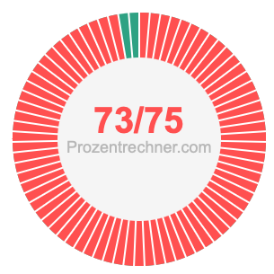 Was ist 73/75 in Prozent? Wie viel ist 73/75 in Prozent? Wie viel Prozent sind 73/75? Hier erklären und zeigen wir Ihnen, wie Sie 73/75 in Prozent berechnen und umrechnen können.