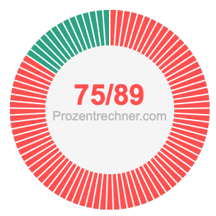 Was ist 75/89 in Prozent? Wie viel ist 75/89 in Prozent? Wie viel Prozent sind 75/89? Hier erklären und zeigen wir Ihnen, wie Sie 75/89 in Prozent berechnen und umrechnen können.