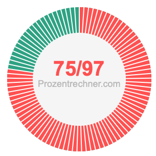Was ist 75/97 in Prozent? Wie viel ist 75/97 in Prozent? Wie viel Prozent sind 75/97? Hier erklären und zeigen wir Ihnen, wie Sie 75/97 in Prozent berechnen und umrechnen können.
