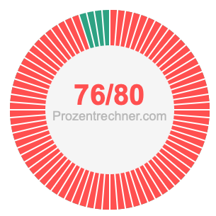 Was ist 76/80 in Prozent? Wie viel ist 76/80 in Prozent? Wie viel Prozent sind 76/80? Hier erklären und zeigen wir Ihnen, wie Sie 76/80 in Prozent berechnen und umrechnen können.