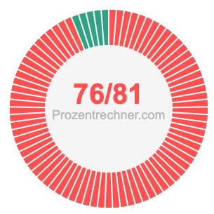 Was ist 76/81 in Prozent? Wie viel ist 76/81 in Prozent? Wie viel Prozent sind 76/81? Hier erklären und zeigen wir Ihnen, wie Sie 76/81 in Prozent berechnen und umrechnen können.
