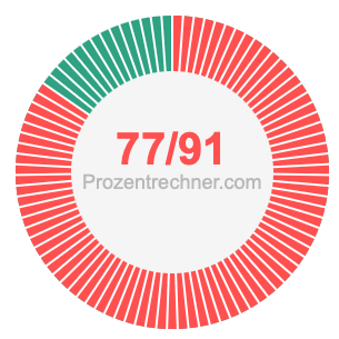 Was ist 77/91 in Prozent? Wie viel ist 77/91 in Prozent? Wie viel Prozent sind 77/91? Hier erklären und zeigen wir Ihnen, wie Sie 77/91 in Prozent berechnen und umrechnen können.