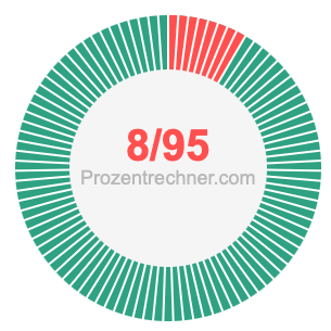 Was ist 8/95 in Prozent? Wie viel ist 8/95 in Prozent? Wie viel Prozent sind 8/95? Hier erklären und zeigen wir Ihnen, wie Sie 8/95 in Prozent berechnen und umrechnen können.