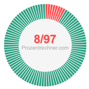Was ist 8/97 in Prozent? Wie viel ist 8/97 in Prozent? Wie viel Prozent sind 8/97? Hier erklären und zeigen wir Ihnen, wie Sie 8/97 in Prozent berechnen und umrechnen können.