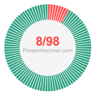Was ist 8/98 in Prozent? Wie viel ist 8/98 in Prozent? Wie viel Prozent sind 8/98? Hier erklären und zeigen wir Ihnen, wie Sie 8/98 in Prozent berechnen und umrechnen können.