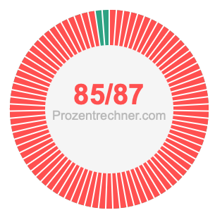 Was ist 85/87 in Prozent? Wie viel ist 85/87 in Prozent? Wie viel Prozent sind 85/87? Hier erklären und zeigen wir Ihnen, wie Sie 85/87 in Prozent berechnen und umrechnen können.