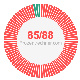 Was ist 85/88 in Prozent? Wie viel ist 85/88 in Prozent? Wie viel Prozent sind 85/88? Hier erklären und zeigen wir Ihnen, wie Sie 85/88 in Prozent berechnen und umrechnen können.