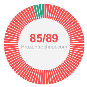 Was ist 85/89 in Prozent? Wie viel ist 85/89 in Prozent? Wie viel Prozent sind 85/89? Hier erklären und zeigen wir Ihnen, wie Sie 85/89 in Prozent berechnen und umrechnen können.