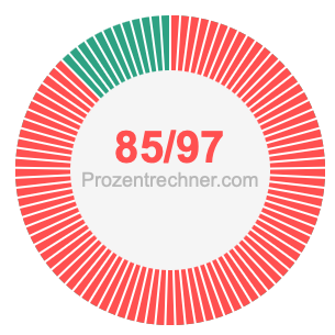 Was ist 85/97 in Prozent? Wie viel ist 85/97 in Prozent? Wie viel Prozent sind 85/97? Hier erklären und zeigen wir Ihnen, wie Sie 85/97 in Prozent berechnen und umrechnen können.