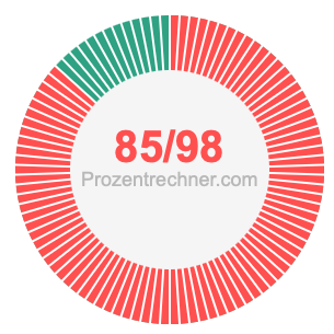 Was ist 85/98 in Prozent? Wie viel ist 85/98 in Prozent? Wie viel Prozent sind 85/98? Hier erklären und zeigen wir Ihnen, wie Sie 85/98 in Prozent berechnen und umrechnen können.
