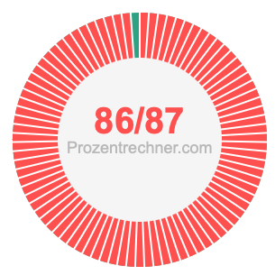 Was ist 86/87 in Prozent? Wie viel ist 86/87 in Prozent? Wie viel Prozent sind 86/87? Hier erklären und zeigen wir Ihnen, wie Sie 86/87 in Prozent berechnen und umrechnen können.
