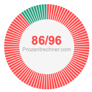 Was ist 86/96 in Prozent? Wie viel ist 86/96 in Prozent? Wie viel Prozent sind 86/96? Hier erklären und zeigen wir Ihnen, wie Sie 86/96 in Prozent berechnen und umrechnen können.