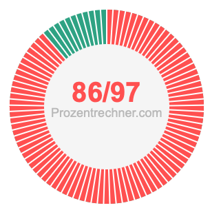Was ist 86/97 in Prozent? Wie viel ist 86/97 in Prozent? Wie viel Prozent sind 86/97? Hier erklären und zeigen wir Ihnen, wie Sie 86/97 in Prozent berechnen und umrechnen können.