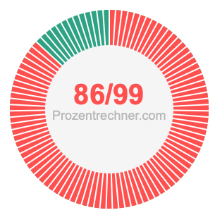Was ist 86/99 in Prozent? Wie viel ist 86/99 in Prozent? Wie viel Prozent sind 86/99? Hier erklären und zeigen wir Ihnen, wie Sie 86/99 in Prozent berechnen und umrechnen können.