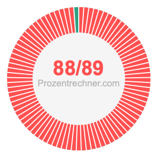 Was ist 88/89 in Prozent? Wie viel ist 88/89 in Prozent? Wie viel Prozent sind 88/89? Hier erklären und zeigen wir Ihnen, wie Sie 88/89 in Prozent berechnen und umrechnen können.