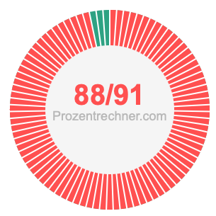 Was ist 88/91 in Prozent? Wie viel ist 88/91 in Prozent? Wie viel Prozent sind 88/91? Hier erklären und zeigen wir Ihnen, wie Sie 88/91 in Prozent berechnen und umrechnen können.