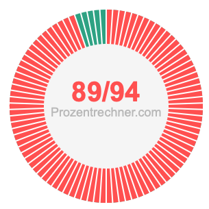 Was ist 89/94 in Prozent? Wie viel ist 89/94 in Prozent? Wie viel Prozent sind 89/94? Hier erklären und zeigen wir Ihnen, wie Sie 89/94 in Prozent berechnen und umrechnen können.