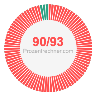 Was ist 90/93 in Prozent? Wie viel ist 90/93 in Prozent? Wie viel Prozent sind 90/93? Hier erklären und zeigen wir Ihnen, wie Sie 90/93 in Prozent berechnen und umrechnen können.