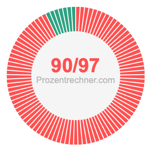 Was ist 90/97 in Prozent? Wie viel ist 90/97 in Prozent? Wie viel Prozent sind 90/97? Hier erklären und zeigen wir Ihnen, wie Sie 90/97 in Prozent berechnen und umrechnen können.