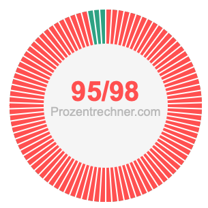Was ist 95/98 in Prozent? Wie viel ist 95/98 in Prozent? Wie viel Prozent sind 95/98? Hier erklären und zeigen wir Ihnen, wie Sie 95/98 in Prozent berechnen und umrechnen können.