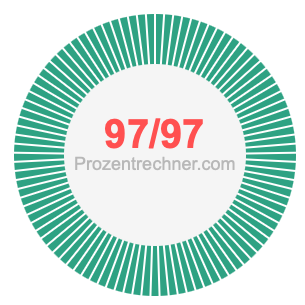 Was ist 97/97 in Prozent? Wie viel ist 97/97 in Prozent? Wie viel Prozent sind 97/97? Hier erklären und zeigen wir Ihnen, wie Sie 97/97 in Prozent berechnen und umrechnen können.