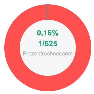 Die folgende Abbildung zeigt 0,16 Prozent und 0,16 als Bruch in einem Kreisdiagramm. Wie Sie jetzt wissen, sind 0,16% dasselbe wie 1/625.