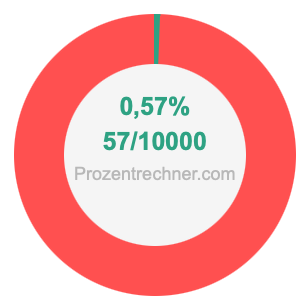 Die folgende Abbildung zeigt 0,57 Prozent und 0,57 als Bruch in einem Kreisdiagramm. Wie Sie jetzt wissen, sind 0,57% dasselbe wie 57/10000.