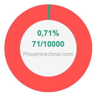 Die folgende Abbildung zeigt 0,71 Prozent und 0,71 als Bruch in einem Kreisdiagramm. Wie Sie jetzt wissen, sind 0,71% dasselbe wie 71/10000.