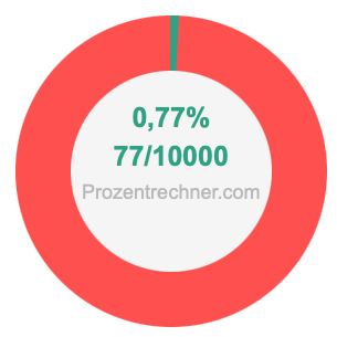 Die folgende Abbildung zeigt 0,77 Prozent und 0,77 als Bruch in einem Kreisdiagramm. Wie Sie jetzt wissen, sind 0,77% dasselbe wie 77/10000.