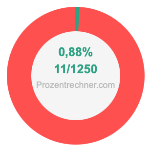 Die folgende Abbildung zeigt 0,88 Prozent und 0,88 als Bruch in einem Kreisdiagramm. Wie Sie jetzt wissen, sind 0,88% dasselbe wie 11/1250.