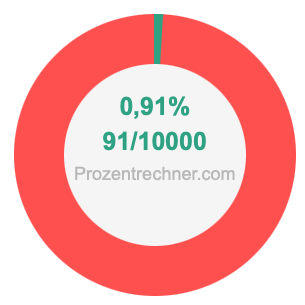 Die folgende Abbildung zeigt 0,91 Prozent und 0,91 als Bruch in einem Kreisdiagramm. Wie Sie jetzt wissen, sind 0,91% dasselbe wie 91/10000.