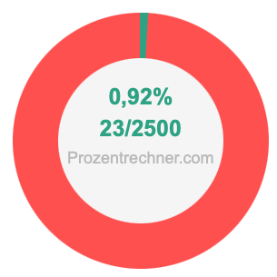 Die folgende Abbildung zeigt 0,92 Prozent und 0,92 als Bruch in einem Kreisdiagramm. Wie Sie jetzt wissen, sind 0,92% dasselbe wie 23/2500.