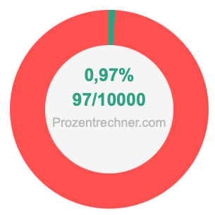 Die folgende Abbildung zeigt 0,97 Prozent und 0,97 als Bruch in einem Kreisdiagramm. Wie Sie jetzt wissen, sind 0,97% dasselbe wie 97/10000.