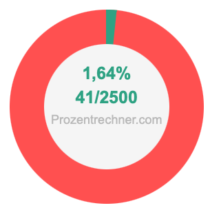 Die folgende Abbildung zeigt 1,64 Prozent und 1,64 als Bruch in einem Kreisdiagramm. Wie Sie jetzt wissen, sind 1,64% dasselbe wie 41/2500.