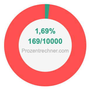 Die folgende Abbildung zeigt 1,69 Prozent und 1,69 als Bruch in einem Kreisdiagramm. Wie Sie jetzt wissen, sind 1,69% dasselbe wie 169/10000.