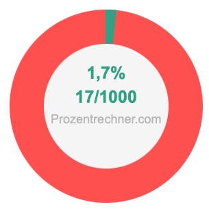 Die folgende Abbildung zeigt 1,7 Prozent und 1,7 als Bruch in einem Kreisdiagramm. Wie Sie jetzt wissen, sind 1,7% dasselbe wie 17/1000.