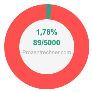 Die folgende Abbildung zeigt 1,78 Prozent und 1,78 als Bruch in einem Kreisdiagramm. Wie Sie jetzt wissen, sind 1,78% dasselbe wie 89/5000.