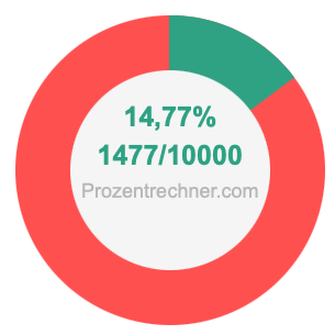 Die folgende Abbildung zeigt 14,77 Prozent und 14,77 als Bruch in einem Kreisdiagramm. Wie Sie jetzt wissen, sind 14,77% dasselbe wie 1477/10000.