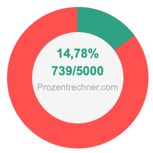 Die folgende Abbildung zeigt 14,78 Prozent und 14,78 als Bruch in einem Kreisdiagramm. Wie Sie jetzt wissen, sind 14,78% dasselbe wie 739/5000.