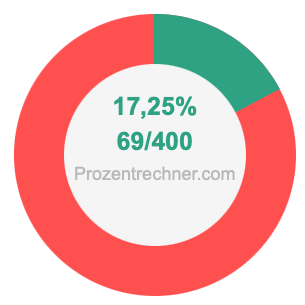 Die folgende Abbildung zeigt 17,25 Prozent und 17,25 als Bruch in einem Kreisdiagramm. Wie Sie jetzt wissen, sind 17,25% dasselbe wie 69/400.