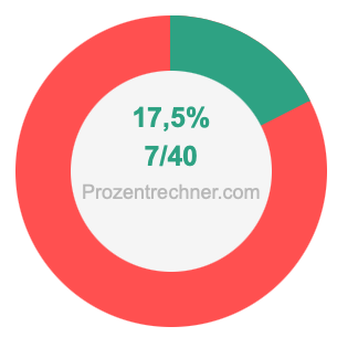 Die folgende Abbildung zeigt 17,5 Prozent und 17,5 als Bruch in einem Kreisdiagramm. Wie Sie jetzt wissen, sind 17,5% dasselbe wie 7/40.