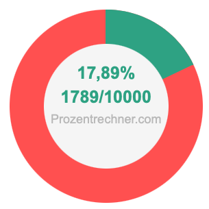 Die folgende Abbildung zeigt 17,89 Prozent und 17,89 als Bruch in einem Kreisdiagramm. Wie Sie jetzt wissen, sind 17,89% dasselbe wie 1789/10000.
