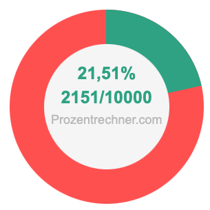 Die folgende Abbildung zeigt 21,51 Prozent und 21,51 als Bruch in einem Kreisdiagramm. Wie Sie jetzt wissen, sind 21,51% dasselbe wie 2151/10000.