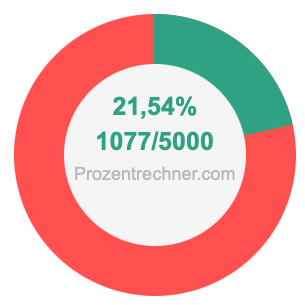 Die folgende Abbildung zeigt 21,54 Prozent und 21,54 als Bruch in einem Kreisdiagramm. Wie Sie jetzt wissen, sind 21,54% dasselbe wie 1077/5000.