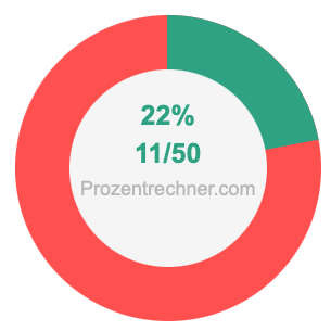 Die folgende Abbildung zeigt 22 Prozent und 22 als Bruch in einem Kreisdiagramm. Wie Sie jetzt wissen, sind 22% dasselbe wie 11/50.