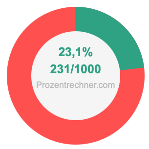 Die folgende Abbildung zeigt 23,1 Prozent und 23,1 als Bruch in einem Kreisdiagramm. Wie Sie jetzt wissen, sind 23,1% dasselbe wie 231/1000.