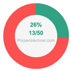 Die folgende Abbildung zeigt 26 Prozent und 26 als Bruch in einem Kreisdiagramm. Wie Sie jetzt wissen, sind 26% dasselbe wie 13/50.