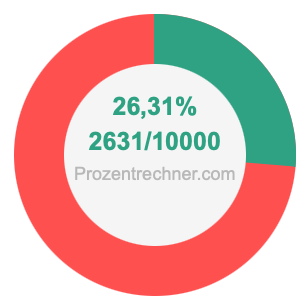 Die folgende Abbildung zeigt 26,31 Prozent und 26,31 als Bruch in einem Kreisdiagramm. Wie Sie jetzt wissen, sind 26,31% dasselbe wie 2631/10000.