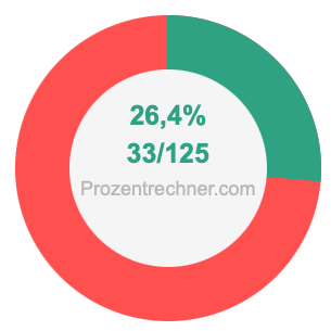 Die folgende Abbildung zeigt 26,4 Prozent und 26,4 als Bruch in einem Kreisdiagramm. Wie Sie jetzt wissen, sind 26,4% dasselbe wie 33/125.